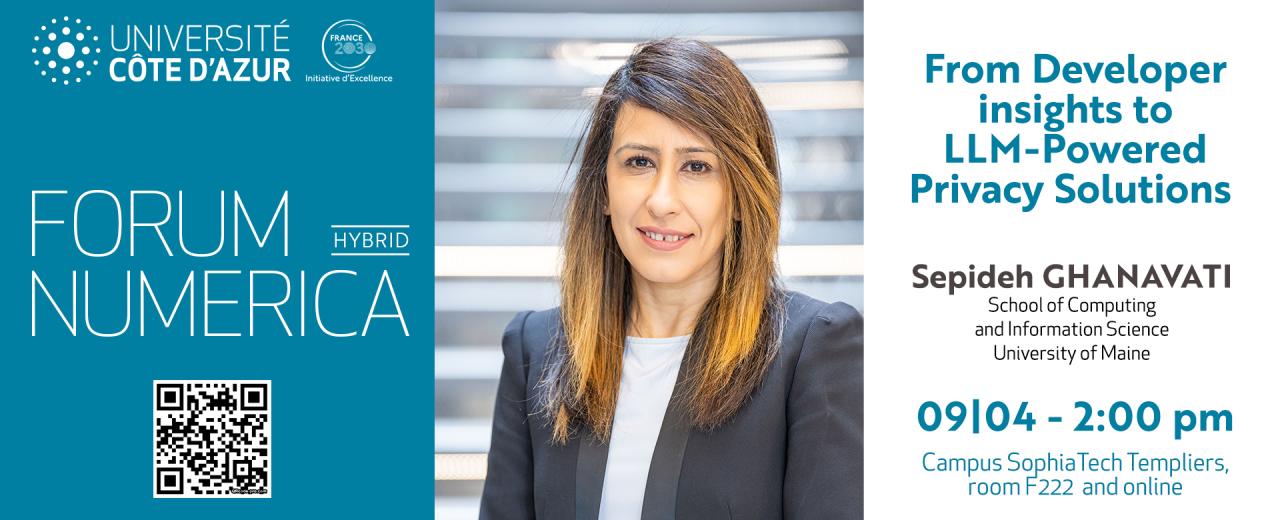 Sepideh GHANAVATI, Associate Professor of Computer Science in the School of Computing and Information Science (SCIS), University of Maine, présentera « From Developer Insights to LLM-Powered Privacy Solution »